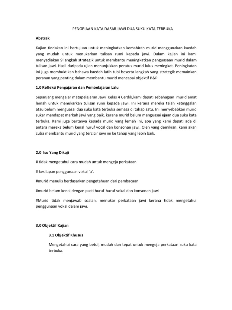 Pengejaan Kata Dasar Jawi Dua Suku Kata Terbuka from imgv2-2-f.scribdassets.com We did not find results for: Check spelling or type a new query. Maybe you would like to learn more about one of these? Ejaan jawi suku kata terbuka.