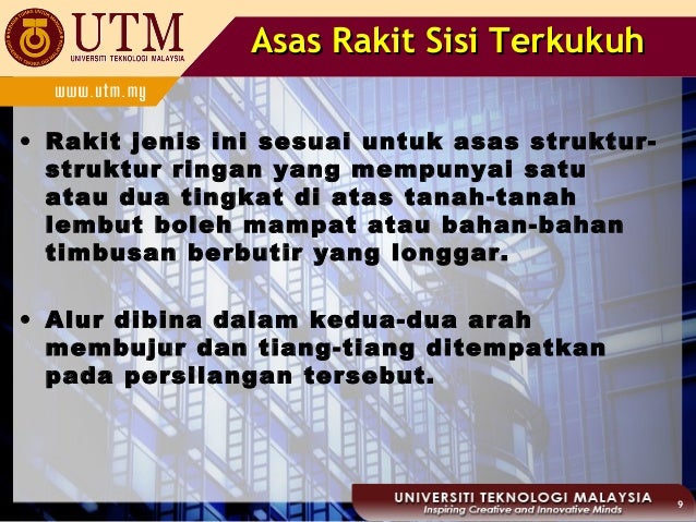 Tambahan pula, guru dapat mentafsir kefahaman. Permasalahan ini boleh diatasi dengan melakukan beberap perkara yang asas seperti pemilihan asas dan kaedah pembinaan yang tepat dan betul untuk sesuatu kawasan. • status tanah sebelum memilih tanah, klien harus mengetahui status tanah yang terlibat. Dengan menggunakan lakaran, terangkan prinsip serta cara mengering dan mengawal air mengikut tiga daripada kaedah yang berikut: Papak konkrit bertetulang dibina di atas tanah manakala rasuk dibina di atas papak tersebut pada kedudukan yang tertentu.